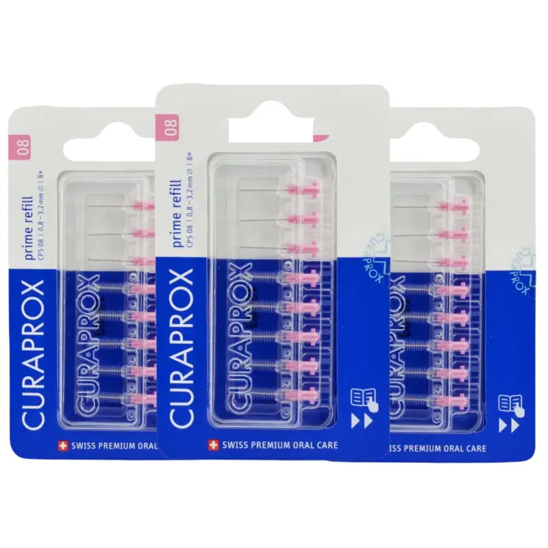 - 3 × opakowanie szczoteczek międzyzębowych Curaprox CPS 08 PRIME (po 8 sztuk)
