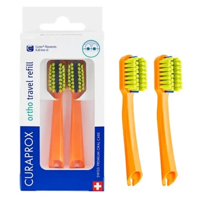 CURAPROX CS 5460 ORTHO TRAVEL REFILL - ortodontyczne końcówki wymienne do szczoteczki podróżnej pomarańczowe 2 szt.