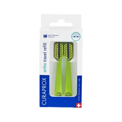 CURAPROX CS 5460 ORTHO TRAVEL REFILL - ortodontyczne końcówki wymienne do szczoteczki podróżnej zielone 2 szt.