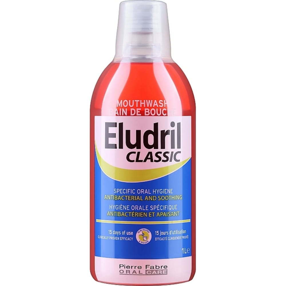 Antyseptyczne i łagodzące właściwości płynu do płukania jamy ustnej EludrilCLASSIC pomagają w załagodzeniu dolegliwości, zapobiegają powstawaniu płytki nazębnej i powstawaniu oraz nasilaniu się problemów z dziąsłami. Ponieważ EludrilCLASSIC pomaga utrzymać wysoki poziom higieny jamy ustnej, można go stosować po zabiegach stomatologicznych, jako uzupełnienie zabiegów okołozębowych lub tych z zastosowaniem implantów.
