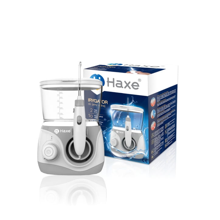 HAXE – irygator stacjonarny to urządzenie przeznaczone do codziennej higieny jamy ustnej, które skutecznie usuwa płytkę nazębną i pomaga ograniczyć powstawanie kamienia. Dzięki regulowanemu ciśnieniu i różnym końcówkom umożliwia dokładne czyszczenie przestrzeni międzyzębowych oraz linii dziąseł.